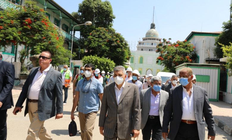 واستعرض المهندس سيد شلبي رئيس قسم أشغال بورسعيد مستجدات أعمال ترميم الأسقف والأرضيات حيث تم الانتهاء من صب سقف البدروم بالكامل وكذلك سقف الدور الأرضي بالجزء الجنوبي من المبنى، فيما بلغت نسب إنجاز أعمال ترميم القبة الجنوبية ٨٠ % والتي تتم بالتوازي مع أعمال الدهانات بعد الكشف عن الألوان الأصلية للجدران الداخلية والخارجية.