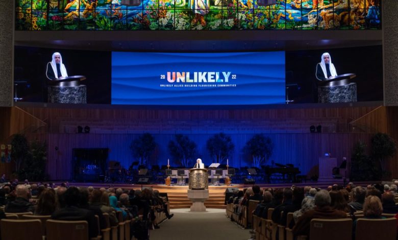 تكساس، كنساس، ميريلاند – بدعوةٍ رسميةٍ من القيادات الإنجيلية في تكساس التي تُمثِّل مركز الطائفة الإنجيلية بالولايات المتحدة الأمريكية، قُدِّم معالي الشيخ الدكتور محمد بن عبدالكريم العيسى، الأمين العام لرابطة العالم الإسلامي، رئيس هيئة علماء المسلمين، ضيف شرفٍ على الحدث الاستثنائي الذي عقده “منتدى الأديان الدولي 2022” تحت شعار: “حلفاء غير معتادين يبنون معاً مجتمعات مزدهرة”، واستضافته للمرة الأولى أهم الولايات الأمريكية الثلاث الحاضنة للمجتمع الإنجيلي الأمريكي، والبالغ عددهم أكثر من 90 مليوناً، وهي ولاية تكساس التي تعتبر الحاضنة الأولى والأهمّ لـ “الإنجيليين” في العالم، وولاية كنساس حيث أكبر الكنائس الأمريكية، وولاية ميرلاند، وذلك بتمثيل ومشاركة رسمية من الحكومة الأمريكية، وزعماء التنوّع الديني الأمريكي، وقيادات في عدد من المنظمات الدولية، وممثلي الجالية الإسلامية الأمريكية، ونخبة من الفعاليات الدينية والمجتمعية والفكرية والأكاديمية المؤثرة داخل الولايات المتحدة وخارجها، وبحضور مئات الآلاف من الجماهير في محطات الحدث التاريخي الثلاث، وعبر المنصات التي بثّته مباشرة.