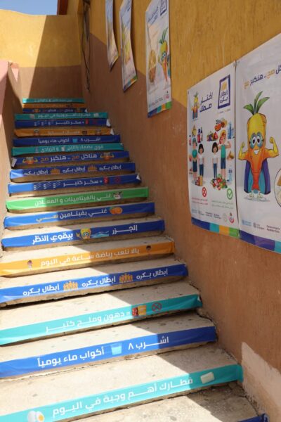 وشمل البرنامج رفع كفاءة البنية الاساسية لمقصف المدرسة لتناسب إعداد وتقديم الوجبات الصحية به، ونشر اللوحات الارشادية للأغذية المفيدة والبدائل الصحية للأغذية الضارة على الحوائط ودرجات السلم لتكون فى مرمى نظر التلاميذ طوال الوقت، مع تعليم الطلاب فائدة الأغذية الصحية عبر مجموعة من الألعاب والمسابقات لتغيير سلوكهم الغذائى نحو الأفضل.