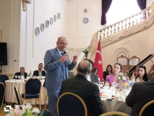 وفي حفل الإفطار التركي التقليدي الذي أقيم يوم 21 مايو والذي ينظم للعام الثاني على التوالي رحب السفير صالح موطلو شن بالصحفيين والإعلاميين المصرين وقدم معلومات عن مميزات الإفطار التركي.
