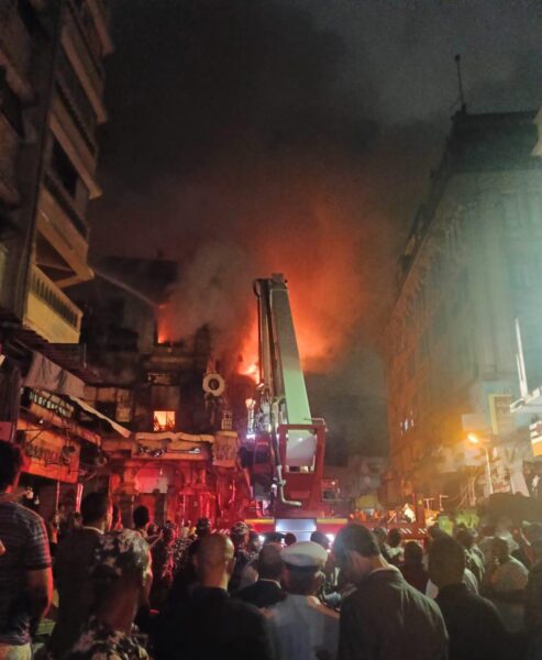 كانت غرفة العمليات المركزية بمحافظة القاهرة قد تلقت بلاغًا بنشوب حريق بعقار رقم ١ شارع الجوهري والمكون من ارضى ودورين حوائط حاملة واسقف خشبية ويستخدم كمخازن ملابس حيث بدأ الحريق بالدور الارضي وإمتد لباقي العقار بالكامل ونتج عنه سقوط سقفى الدورين الأول والثانى على الدور الأرضى وجزء من الواجهة، كما امتد الحريق الي العقار المجاور له الواقع في ٤ شارع العسيلى، والمكون من ٤ طوابق ويستخدم كمخزن للملابس.