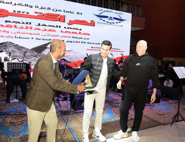وكان مفاجأة الختام نجم الحفل الفنان حلمي عبدالباقي الذي تفاعل الاعضاء والحضور مع أغانية المتنوعه وسط حشد كبير من أعضاء النادي وفي ختام الحفل كرم كابتن طيار وليد مراد الفنان حلمي عبدالباقي والشاعر السوري الكبير محمد الفراتي مؤسس فرقة النهر الفراتي للموسيقي والغناء وذلك لمشاركتهم المميزة بأهداء هذا الحفل لاعضاء النادي نظرا لعراقة نادي الطيران الرياضي وايضا لخصوصية الاحتفالية الوطنية بانتصارات اكتوبر المجيده 1973.