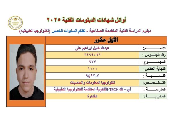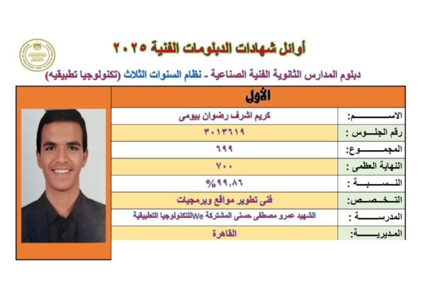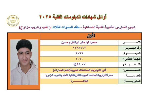 كما وجّه نائب المحافظ الشكر والتقدير لأولياء الأمور على دعمهم المتواصل وحرصهم على توفير البيئة المناسبة لأبنائهم لتحقيق هذا التفوق. وأشاد في الوقت ذاته بجهود كافة العاملين في منظومة امتحانات الشهادة الفنية، مثمنًا إخلاصهم في أداء واجبهم الوطني.