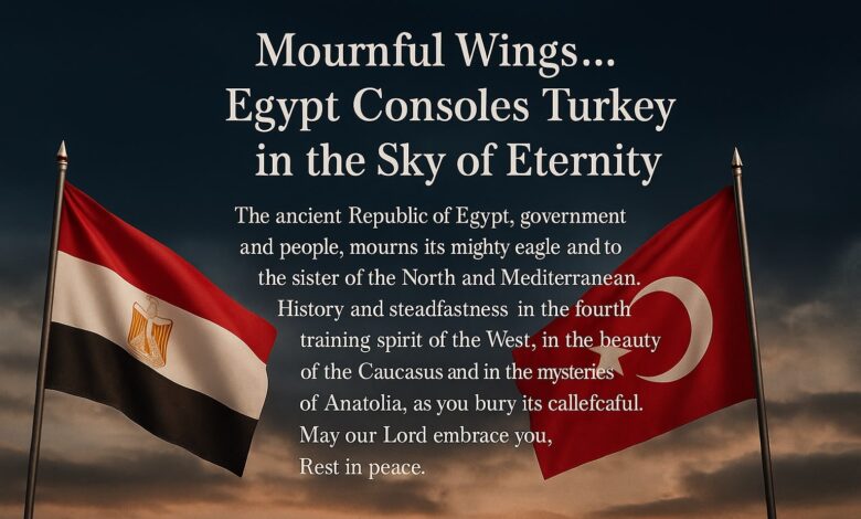 أعربت جمهورية مصر العربية، حكومةً وشعبًا، عن خالص تعازيها وصادق مواساتها إلى الجمهورية التركية في ضحايا حادث سقوط الطائرة العسكرية، الذي أسفر عن فقدان عدد من عناصر القوات المسلحة التركية.