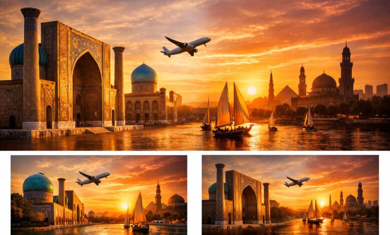 بين سمرقند وبخارى والقاهرة، ثمة خيط حضاري قديم يتجدد اليوم عبر حركة الطيران والسياحة.