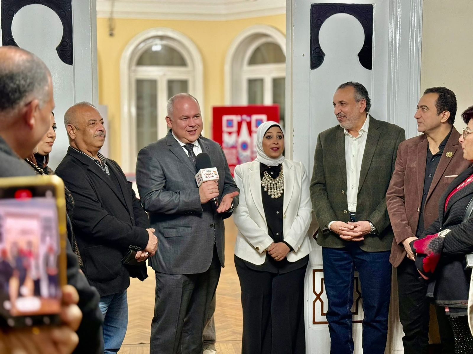 حضر افتتاح المعرض فاديم زايتشيكوف مدير المراكز الثقافية الروسية في مصر، والدكتور وافي الشرقاوي موجه عام التربية الفنية بمديرية التربية والتعليم بالقليوبية، والدكتور محمد إسحاق عميد كلية التربية الفنية بجامعة حلوان سابقًا، والدكتور كرم مسعد رئيس قسم الحُلي والمعادن بكلية التربية الفنية، إلى جانب الأستاذ إبراهيم حسين مدير مدرسة حسن أبو بكر الرسمية للغات، والأستاذة ميرفت سيد مدير مدرسة أسماء الإعدادية بنات، وكذلك شريف جاد مدير النشاط الثقافي بالبيت الروسي.