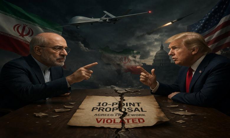 ورغم إعلان الرئيس الأمريكي دونالد ترامب أن مقترح النقاط العشر الإيراني يمثل “أساسًا عمليًا للتفاوض”، فإن الوقائع — بحسب قاليباف — تعكس تناقضًا واضحًا بين التصريحات والممارسات.