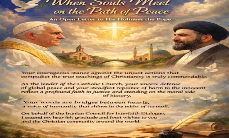 بعث السيد/ محمد مهدي إيماني بور، رئيس مجلس صنع السياسات وتنسيق حوار الأديان رسالة شكر وثناء للبابا ليو الرابع عشر لموقفه الصادق تجاه الإعتداء الغاشم للمرة الثانية على الجمهورية الإسلامية الإيرانية بواسطة نتنياهو وترامب والتى جاءت على النحو التالى: