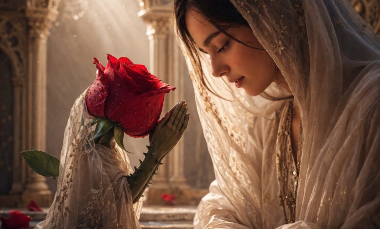 فَهَلْ أَنَا وَرْدٌ… أَمْ أَنَّكِ خَلَقْتِ الجَمَالَ مِنْ جَدِيدٍ فِيَّ؟
