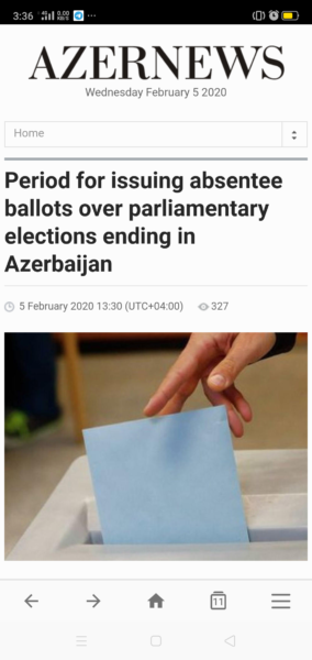 تشهد أزرببجان استعدادت قصوى على مستوى كل الأجهزة المعنية لإجراء الإنتخابات البرلمانية المبكرة فى التاسع من فبراير الجارى 2020 والتى دعا إليها الرئيس إلهام علييف فى الخامس من ديسمبر 2019.