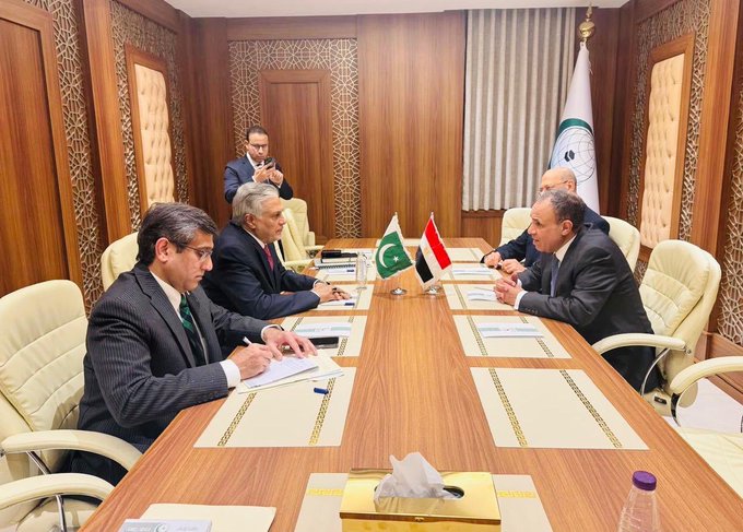 Deputy Prime Minister and Foreign Minister Ishaq Dar acknowledged Egypt’s crucial role in providing humanitarian aid to the Palestinians in Gaza and its efforts to mediate a temporary ceasefire in the occupied territory. The two Foreign Ministers reaffirmed their opposition to the forced displacement of Palestinians from their homeland. They concurred that a lasting resolution to the crisis lies in the creation of a viable and contiguous Palestinian State based on the borders prior to June 1967, with Al-Quds Al-Sharif as its capital.Deputy Prime Minister/Foreign Minister Ishaq Dar also invited Dr. Badr Abdelatty to visit Pakistan on mutually convenient dates.