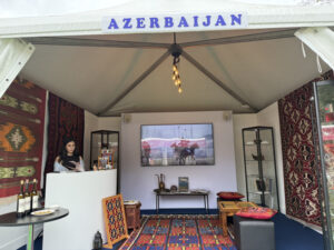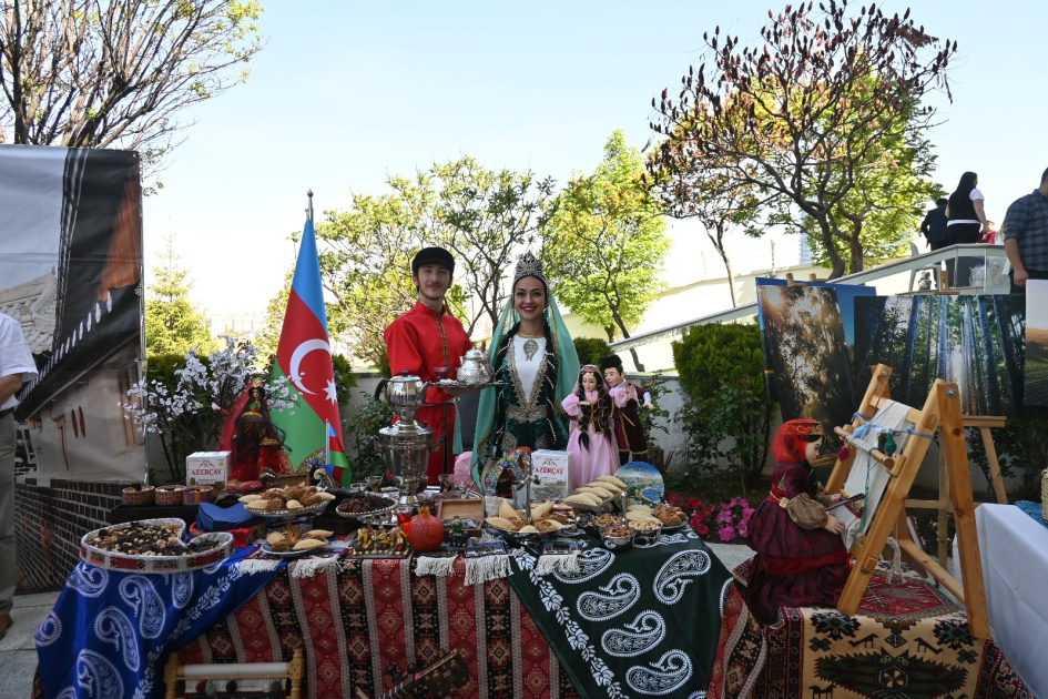 Visitors from various nationalities were drawn to the Azerbaijani booth, which showcased traditional dishes, famous Azerbaijani tea with national sweets, and a collection of cultural souvenirs that captivated both children and adults.