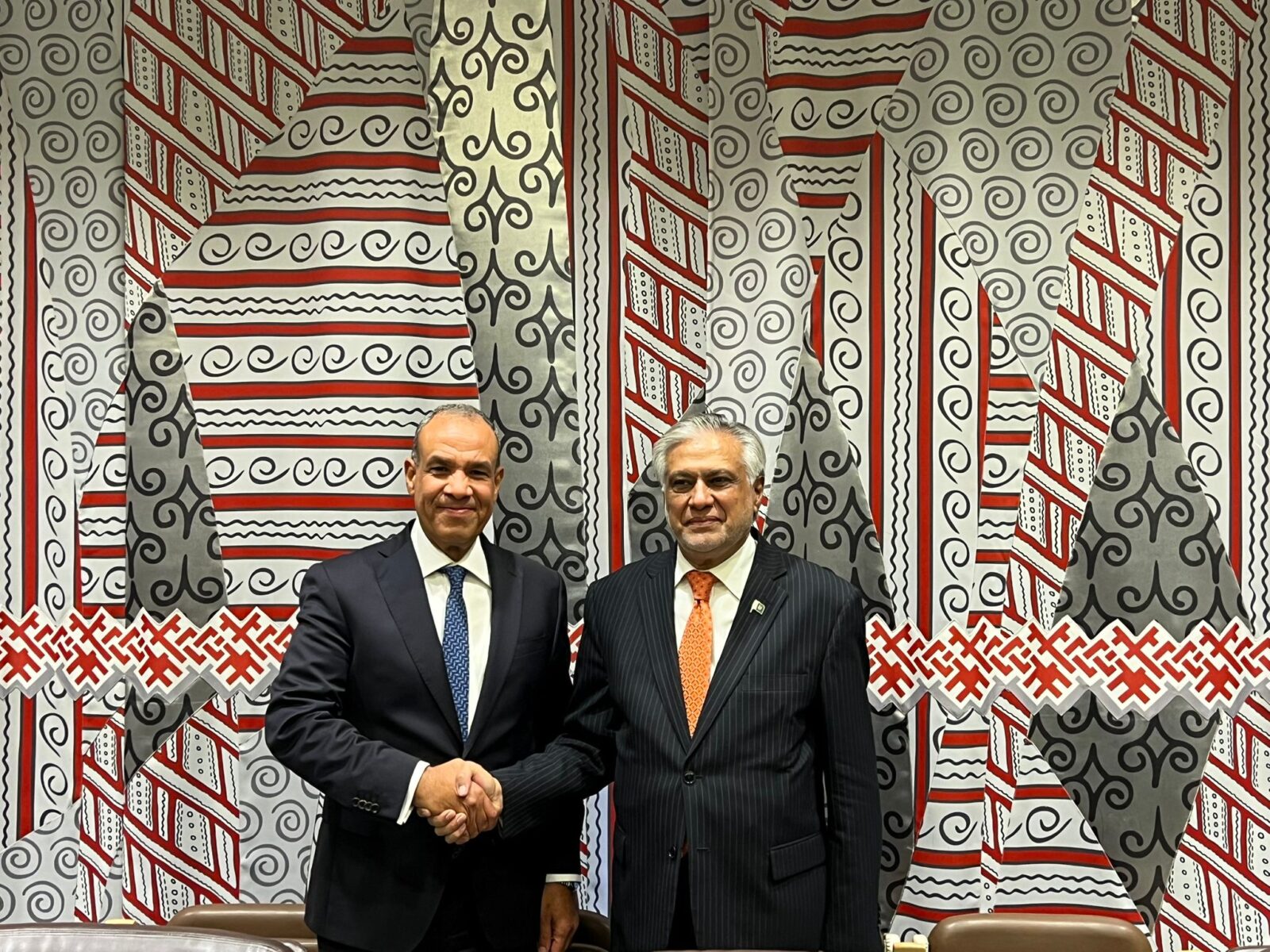 On July 28, Dr. Badr Abdel Aaty, Egypt’s Minister of Foreign Affairs and Migration, met with Mr. Mohammad Ishaq Dar, Deputy Prime Minister and Minister of Foreign Affairs of Pakistan, on the sidelines of the High-Level International Conference on the Peaceful Settlement of the Palestinian Question and Implementation of the Two-State Solution, held at the United Nations Headquarters in New York.