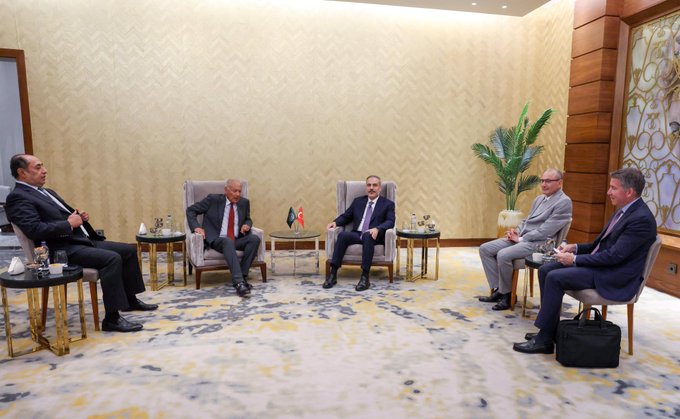 Arab League Secretary-General Ahmed Aboul Gheit met this evening in the city of Alamein with Turkish Foreign Minister Hakan Fidan.