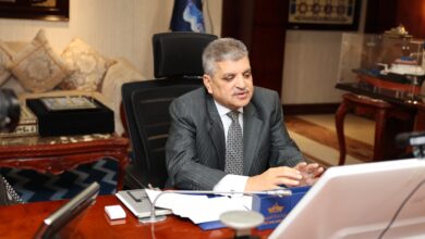 أشرف أبو عريف خلال اجتماعه عبر تقنية الفيديوكونفرانس مع المدير التنفيذي لمجموعة «إيه. بي. مولر ميرسك»، بحث الفريق أسامة ربيع،…